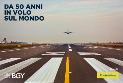 Con Poste Italiane avete fortemente voluto una sottolineatura filatelica che storicizzi questo importante traguardo. L’annullo riporta la sigla internazionale dell’Aeroporto Caravaggio “BGY” così come molto bella e significativa appare la cartolina (foto di Kamal Hraoui) con la frase emblematica “Da 50 in volo sul mondo”.