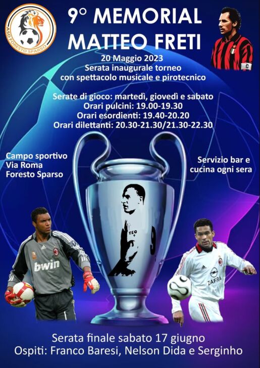 Le finali sabato 17 giugno, con ospiti eccezionali, Franco Baresi, Nelson Dida e Serginho. Tante partite, servizio cucina, ritrovo della comunità e di parenti e amici nel ricordo sempre vivo del capitano Matteo Freti.