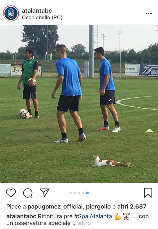 Sarà una Dea dalle sette vite a Ferrara? A guardare la foto postata dall’Atalanta su instagram sembrerebbe di sì. Ecco quindi i nostri eroi impegnati nella rifinitura con un ospite speciale, un gatto bianco e rosso. Speriamo porti fortuna!