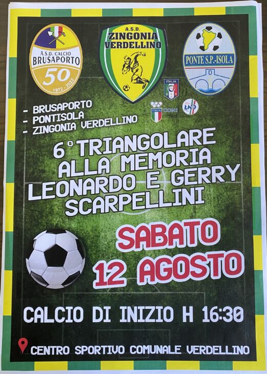 Tutti invitati domani (sabato 12 agosto) per lo straordinario triangolare, arrivato ormai alla sua sesta edizione, in onore e ricordo di Leonardo e Gerry Scarpellini. Oltre ai padroni di casa dello Zingonia Verdellino, presenti anche due ospiti di eccellenza, direttamente dalla Serie D, Ponte San Pietro e Brusaporto. Porte aperte quindi allo stadio di Viale degli Oleandri 1, calcio di inizio alle 16:30.