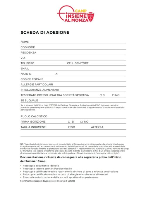 Ad Azzano San Paolo il primo Camp Monza. ISCRIZIONI entro il 15 giugno