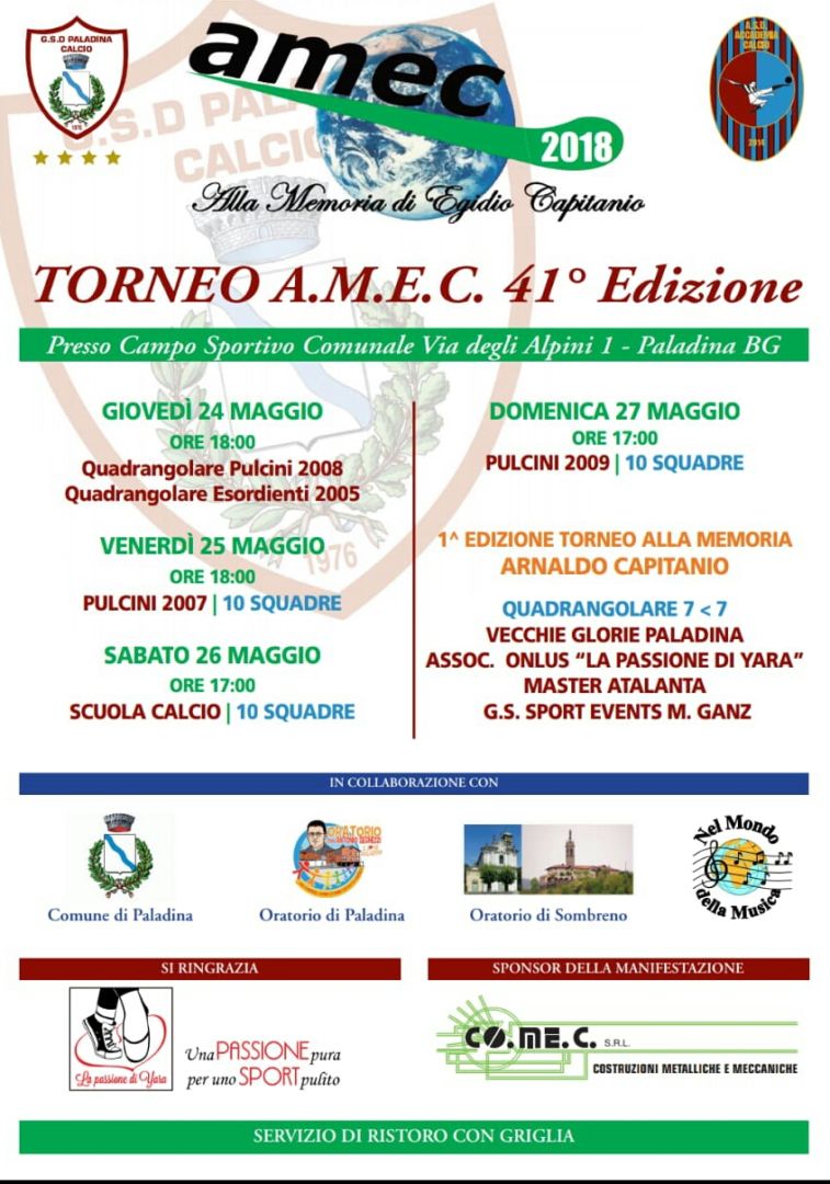 Amec 2018, si riparte stasera con due tornei, Pulcini 2008 sul sintetico e Esordienti 2005 sul campo in erba. Poi per tutto il fine settimana un susseguirsi di partite compreso domenica il quadrangolare Vecchie Glorie.
