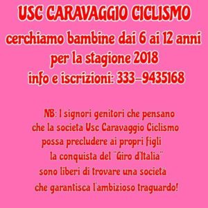 Anche a Caravaggio iscrizioni per il ciclismo giovanile 7 Febbraio, 2018 Le possibilitĂ di fare ciclismo per bambini e bambine nella bergamasca sono tante. Questi sono i contatti per informazioni e iscrizioni all’USC Caravaggio.