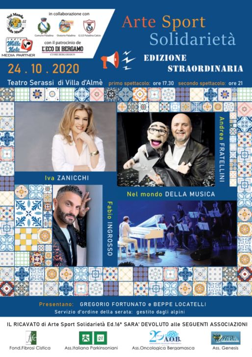 Come sempre gli introiti della serata andranno a beneficio delle Associazioni AOB (Associazione oncologica bergamasca), AIP (Associazione italiana parkinsoniani), Associazione Genesis di San Pellegrino e Fondazione Fibrosi cistica sezione di Villa d’Almè.