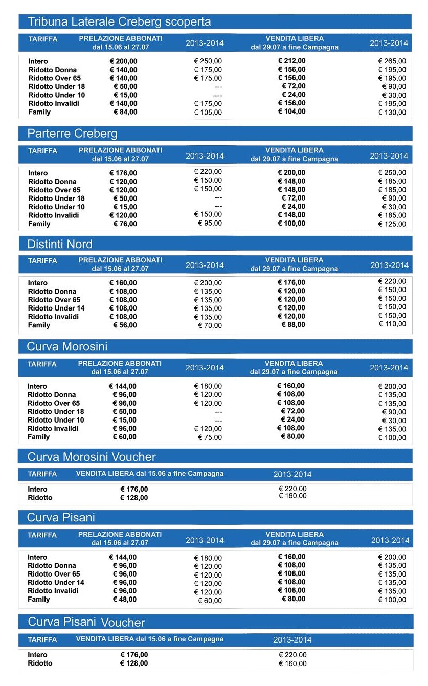 Sconto del 20% sui prezzi della passata stagione, un giubbotto omaggio a tutti gli abbonati,