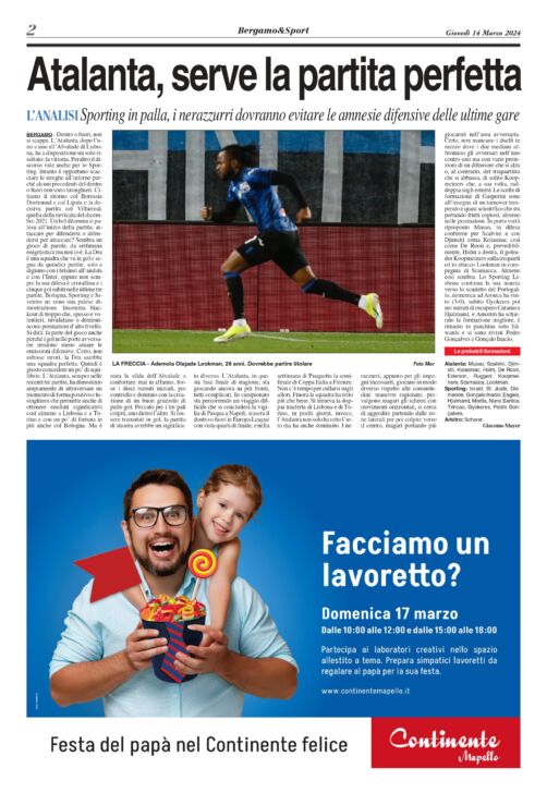 Atalanta-Sporting Lisbona leggi qui la copia gratuita del Bergamo & Sport stadio 13 Marzo, 2024 Il Bergamo & Sport stadio distribuito ai cancelli dello stadio prima della partita ATALANTA-SPORTING LISBONA è leggibile e scaricabile gratuitamente cliccando questo link: BERGAMO & SPORT Stadio-ATALANTA-SPORTING LISBONA
