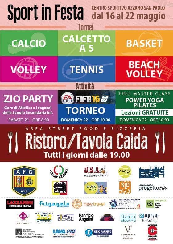 Azzano San Paolo in festa con l’Azzano Fiorente Grassobbio e la manifestazione “Ci sto dentro”, in programma dal 16 al 22 maggio al Centro Sportivo: previsti tornei di calcio,