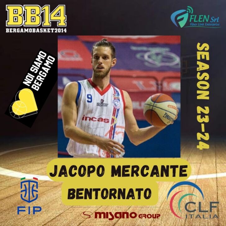 Aveva già giocato da queste parti dal 2013 al 2016, all’inizio quando il club si chiamava ancora Virtus Bergamo Terno, una promozione immediata dalla Divisione Nazionale C sotto coach Michele Pasqua seguita dal biennio cadetto agli ordini di Alessandro Galli e Cesare Ciocca. La Bergamo Basket 2014 del nuovo allenatore Gabriele Grazzini, per centrare il terzo colpo di mercato, decide di riannodare il filo della memoria sul parquet con Jacopo Mercante, ala nativa di Cernusco sul Naviglio prossima ai 33 anni (il 30 luglio).