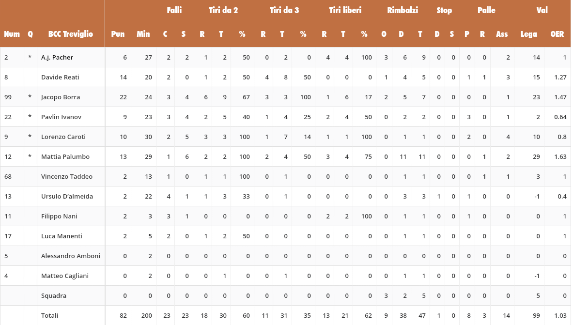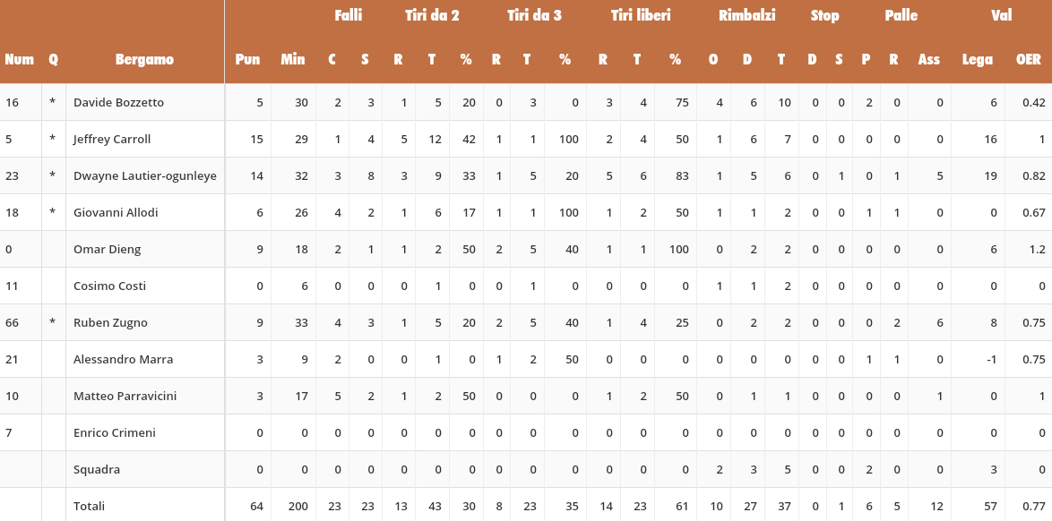 Al rientro in campo alla banda del buco dalla lunga nel paniere altrui si aggiunge il bulgaro e il gap si trasforma in voragine (47-25, 2′). Zugno si cimenta nell’accenno di shootout stroncato sul nascere, Caroti allunga sul 51-28 nel gioco a due con l’eccellente due metri tuttofare. In 26 minuti nessun cittadino è in doppia cifra: i due stranieri sparigliano a 9 sull’entrata del 33-51 dell’inglese, Carroll arriva a 15 entro la fine del terzo periodo, ma tra il losco e il fosco la bomba di Reati e Taddeo la riportano sul più 23 (63-40, 9′). Nell’ultima corsetta cronometrica c’è il più 26 di Borra, al terzo missile aria-aria e dopo metà fatica consumata dalla lunetta (3’20”). Il garbage time prosegue con l’estemporaneo acuto di Dieng da 7 metri; sotto di 23 si desta pure Marra (74-54, 6′), segnano pure il 2002 Manenti e dalla carità il 2000 Nani, mentre il londinese in odore di taglio insacca dall’angolo per il meno 19 (61-80). AAA novità cercandsi, ma non è che il cambio di un solo forestiero possa risolvere tutte le pecche di un roster a metà fra l’inesperto e l’inadatto.