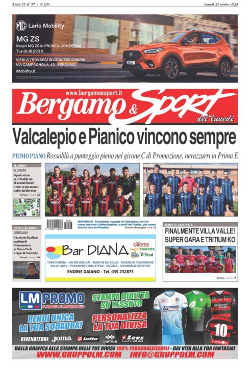 Sette vittorie su sette partite di campionato: Valcalepio e Pianico sono semplicemente due squadre fenomenali. E a loro dedichiamo la prima pagina di questo numero di Bergamo & Sport, che, come di consueto, potete acquistare o dal vostro giornalaio di fiducia o tramite la nostra edicola digitale cliccando dalle sei di mattina su www.bergamoesport.it/abbonamenti. Andiamo in ordine di categoria. I rossoblù di mister Delpiano hanno vinto di misura il big match del Girone C di Promozione contro l’AlbinoGandino e adesso sono in fuga, a più otto dalle inseguitrici. Stellari anche i nerazzurri di Berlinghieri, Prima E, capaci di vincere 1-0 sul difficile campo di Paladina e di restare a quattro lunghezze dalle seconde della classe, il Sovere e il Brembate Sopra. Tantissimo calcio bergamasco sul nostro giornale, con in evidenza la bella e convincente vittoria contro la Tritium del Villa Valle del nuovo corso targato mister Sgrò. Poi, tra i richiami, come potete fare per prenotare la vostra copia del libro del direttore, Matteo Bonfanti, edito da Bergamo & Sport. S’intitola “Mirabili vite di uomini illustri e tutto su mia madre” e racconta le esistenze di tanti bergamaschi che amano il nostro pallone. Parliamo di Paolo Agnelli, Egidio Capitanio, Marco Carretto, Vittorio Feltri, Luigi Foppa, Gabriele Magoni, Giuseppe Magoni, Roberto Mazzoleni, Ottone Mesti, Roberto Paratico, Antonio Percassi e Roberto Regazzoni. Sul nostro giornale spazio anche a una nuova rubrica, “Dribbling”, a nostro parere imperdibile. A firma del bravissimo Paolo Arrigoni, racconta i protagonisti del nostro calcio, e in questa prima puntata trovate la commovente storia di Marco Preda, bomber soprannominato il cigno di Swarovski.