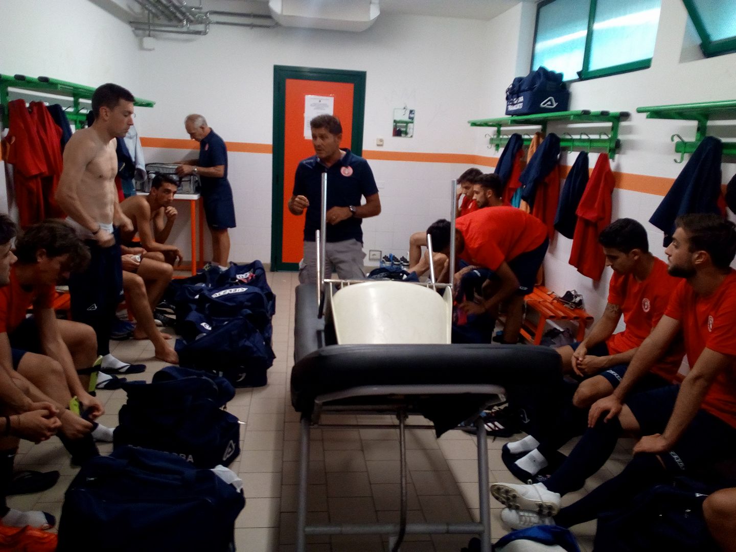 Dieci minuti e siamo al campo, Bendoricchio mi ha preparato la divisina degli allenamenti, pantaloni e calzettoni blu, maglia rossa, tutto ancora incartato. Io sono emozionatissimo perché è da quindici anni che non gioco una sfida del calcio dilettanti, esattamente da una domenica maledetta del 2003, attaccante dell’Atletico Lecco, rotto al primo pallone. Entro nello spogliatoio e i Bendoricchio boys sono tutti lì pronti, ragazzi giovanissimi, classe 97, 98 e 99, con addosso la voglia di spaccare il mondo. “Buonasera, signore. Cosa fa qui?”. Mi sento vecchio e solo, i baby calciatori mi guardano come un marziano. Interviene il Bendo: “Lui è il Bonfa, il famoso direttore di Bergamo & Sport. Entrerà nella ripresa, passategli il pallone. E’ un ordine”. Sguardi adoranti quando parla il numero uno, un po’ perché il Bendo è una persona magnetica, tanto perché è stato uno che ha giocato davanti a diecimila spettatori. Mi cambio e vado a trovare gli avversari, la Cividatese neopromossa in Prima. Mister Ferigo sta spiegando gli schemi, lo interrompo. “Sono un ex giocatore, farò qualche minuto nella ripresa. Abbiate pietà”. Risate generali.