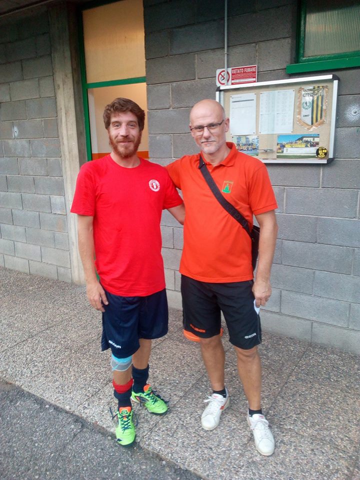 Nel frattempo Cividatese e Aurora Travagliato non si risparmiano. Agonismo da vendere, tutti con il medesimo desiderio in testa: diventare punti fermi dei rispettivi allenatori, Ferigo e Bosetti, due preparatissimi, che vivono per il pallone. L’aria che si respira è bellissima, massimo impegno, ma pure tanti sorrisi perché è un’amichevole. Ci si mena, comunque, ma senza offendersi. Arriva la ripresa, come allora sento che mi scappa la pipì dall’emozione. Sigarettina per rilassarmi, blando riscaldamento col Bendo ed entriamo sul 2-0 per i padroni di casa. Bendoricchio fa subito vedere che la sua categoria era la Lega Pro con un paio di chiusure da urlo, io mi nascondo in fascia per evitare di far figure. Sono lentissimo, i classe 98 giocano al doppio della mia velocità… Mi arriva il primo pallone, lo tocco, tento il dribbling, mi riesce, mi stendono in due. “Ragazzi, sono un fuoriquota, tra l’altro giornalista. Non sono competitivo. Vi prego…”. Dieci minuti dopo conquisto la palla a centrocampo, altra veronica e altra botta al ginocchio da parte di un ragazzino che potrebbe essere mio figlio. Decido che il mio ritorno tra i dilettanti non ha più senso e m’invento terzino destro fino al fischio finale. E lì, mentre stiamo tornando negli spogliatoi, il Bendo, ha un colpo di genio dei suoi, inscenare un mio gol per la favola che ha in testa: il vecchio campione torna in campo dopo secoli e la mette nel sette. Sentiamo il ds della Cividatese, Rizzi, un altro bravo e simpatico, uno in gamba, da passarci del tempo, e si mette a ridere. “Va benissimo”. E ci presta al volo quattro difensori e un portiere per la nostra farsa. “Ragazzi, c’è da far fare un gol al Bonfa. Siate credibili”. L’undici dell’Aurora Travagliato c’è e l’ad Davide Colossi è pronto a riprendere il golasso col telefonino. Parla il Bendo: “Facciamo che il Bonfa la piazza su punizione. Voi mettetevi in barriera, noi stiamo in aria a far casino”. Tiro la prima fuori, la seconda alta, quindi la terza, la quarta e la quinta tutte lontanissime dalla porta. Alla sesta, quando ormai gli attori coinvolti sono sul punto di perdere sia la speranza che la pazienza, riesco a centrare lo specchio, (finta) papera dell’estremo difensore, rete e un minuto esatto di festeggiamenti (vedi filmato sulla mia pagina facebook).
