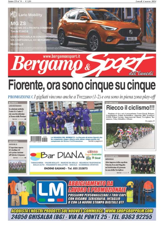 Bg & Sport in edicola: in evidenza la Fiorente, il ciclismo giovanile, il Mapello, le selezioni bergamasche Under 15 e Under 17 e l’Asperiam