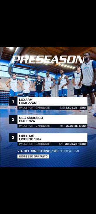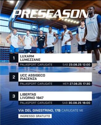 La Gruppo Mascio Blu Basket Bergamo si prepara all’inizio della nuova stagione con un programma di amichevoli che vedrà i bergamaschi impegnati sul parquet del palasport di Carugate. Il primo test è per sabato 23 agosto alle 12, quando la squadra affronterà Lumezzane. La sfida si terrà presso la struttura in Via del Ginestrino 17, e rappresenterà il primo banco di prova per il gruppo di coach Andrea Zanchi. Le amichevoli successive si svolgeranno il mercoledì 27 agosto alle 17.30 contro Piacenza e il sabato 30 agosto alle 18 contro Livorno. Tutti gli eventi saranno a porte aperte con ingresso libero in tribuna, dando la possibilità ai tifosi di seguire da vicino i progressi della squadra.