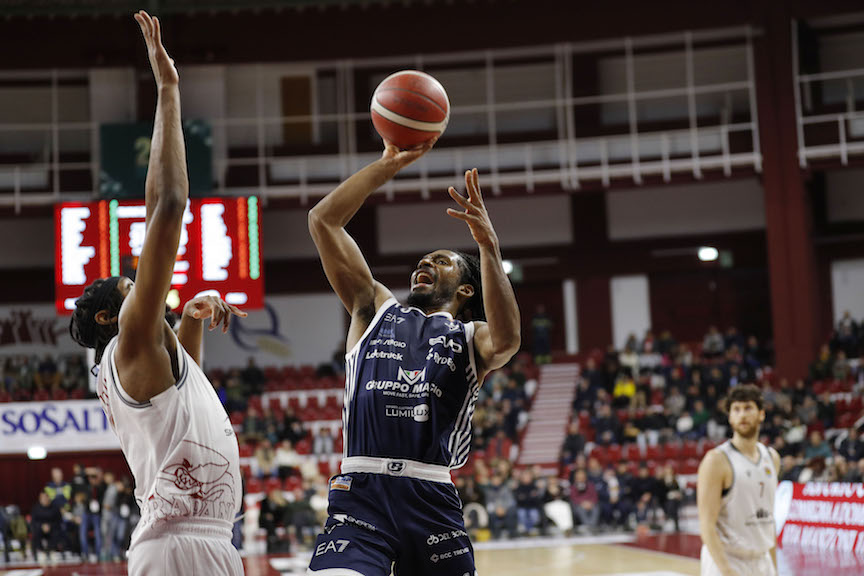 La tripla di Harris porta in vantaggio per la prima e unica volta la Gruppo Mascio, ma gli Shark rispondono con un minibreak di 7-0. Il protagonista è Notae con due penetrazioni e un assist. Sono i lunghi Pullazi e Renzi che lanciano l’allungo dall’arco e la Blu Basket va sotto in doppia cifra: 33-23 (14′). I biancoblù escono bene dal timeout con cinque punti consecutivi (33-28), poi si mette a lavorare in area Horton con quattro punti (37-28). La zona tiene in gara la Blu Basket (37-33), ma nel finale di periodo Notae (12 punti a metà gara) firma il 42-33 dai 6,75.