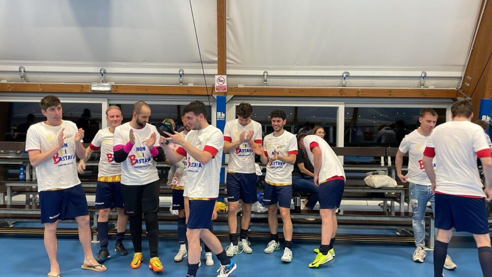 A fine partita, tra i vari festeggiamenti siamo riusciti a strappare due parole a mister Gotti, visibilmente emozionato: “La squadra c’è da 3 anni, abbiamo un gruppo storico che è presente dall’inizio, al quale si sono aggiunte varie pedine nel corso dei campionati, cercando sempre di migliorarci e trovare quei tasselli che mancavano per completare il puzzle. Oggi la prestazione non è stata delle migliori, avrei voluto vincere, ma alla fine quel che conta è aver vinto il campionato, certo abbiamo sudato tanto e non siamo riusciti a chiuderla nel primo tempo, frazione nella quale meritavamo di più. Ringrazio tutti coloro che hanno permesso di arrivare a questa serata, ma due parole al gruppo storico sono doverose. Siamo amici da una vita, ci incontravamo ogni giovedì per giocare, e a un certo punto abbiamo deciso di provare ad iscriverci ad un campionato, giochiamo insieme da tanti anni e questa vittoria è nostra. Per me il calcio rappresenta molto di più di un gioco, sono stati due anni difficili, da quest’anno ho appeso le scarpette e sono diventato il loro allenatore per motivi di salute, ma questi ragazzi mi sono stati sempre vicini. Oggi è un po’ il coronamento di un percorso di un gruppo di amici, che ha iniziato per gioco e ha finito per vincere un campionato.”