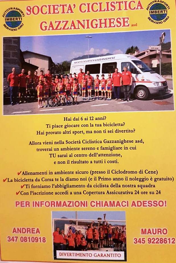 La Società Ciclistica Gazzanighese apre le iscrizioni per ragazzi e ragazze dai 6 ai 12 anni, età in cui il ciclismo è festa e divertimento.
