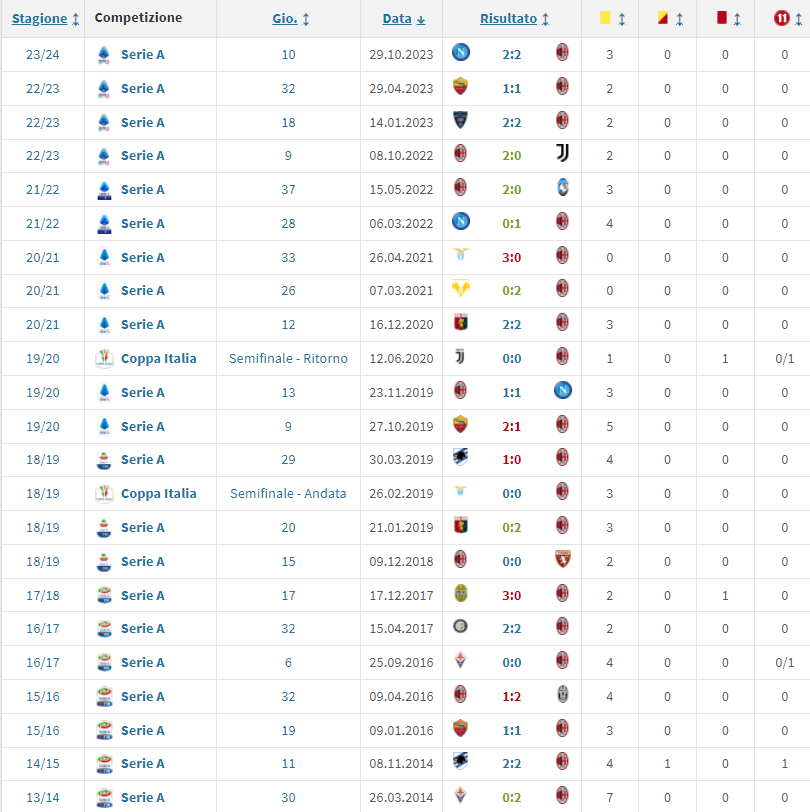 2 perse e 1 vinta, sempre fuori casa, con l’arbitro che va per la maggiore a dirigere. L’ultima in ordine di tempo è il 2-0 rossonero il 15 maggio 2022 (Leo, Hernandez), mentre risale a Stefano Colantuono l’unico semaforo verde il 15 settembre 2012 grazie alla botta dalla distanza di Luca Cigarini al minuto 64. Prima ancora, il tris secco sulla ruota di San Siro calato dall’ex Superpippo Inzaghi l’8 marzo 2009 quando c’era Gigi Delneri in panchina e Adriano Ferreira Pinto lasciò il crociato sinistro in campo.