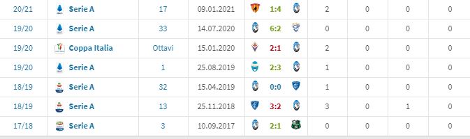 Completano il team arbitrale gli assistenti Luigi Rossi di Rovigo e Antonio Vono di Soverato, il quarto ufficiale Giovanni Ayroldi di Molfetta, il V.A.R. Daniele Orsato di Schio e l’A.V.A.R. Giorgio Peretti di Verona. 4-1-2 il record dei bergamaschi con l’analista finanziario della sezione Aia di Pinerolo, 30 anni compiuti lo scorso 28 novembre, mentre per le Zebrette friulane. Che per converso non hanno mai spuntato il bottino pieno con lui a dirigere: 3 ko su 5 gare, di cui l’ultima il 2-1 subìto a Bologna il 30 settembre 2018. Screenshot da Transfermarkt, la Bibbia del calcio in termini di statistiche.