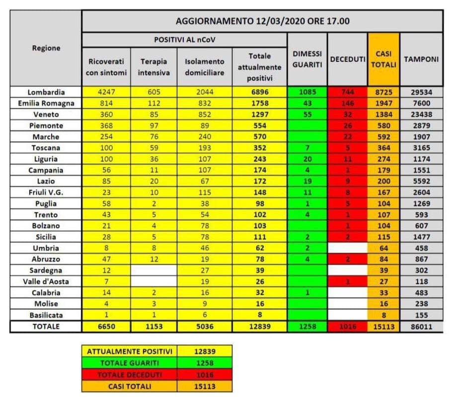 Coronavirus, gli ultimi dati: i decessi superano quota mille in Italia, oltre 15mila le persone contagiate dall’inizio dell’epidemia