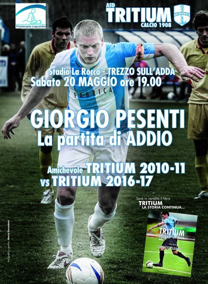 Chi ama il calcio, quello vero, non può di certo mancare sabato 20 maggio alla partita di addio di Giorgio Pesenti. Sarà una grande festa del calcio che la Tritium ha deciso di organizzare in suo onore con un’amichevole tra gli ex giocatori della Tritium della Serie D fino alla Lega Pro contro la Tritium di questo campionato. Re Giorgio da Brembate in luglio compirà 42 anni e ha deciso di appendere le scarpe al chiodo. Una stagione questa che l’ha visto tornare a giocare nella Tritium in Prima Categoria con cui ha vinto il suo ultimo campionato. Per raccontare la vita calcistica di Giorgio Pesenti basterebbero questi numeri: 22 anni di carriera, più di 700 partite giocate e oltre 200 gol segnati in tutte le categorie del calcio dilettantistico, dalla Seconda alla serie D. Pesenti ha fatto parte della Tritium che nella stagione 2009-2010 ha stravinto il campionato di serie D. L’appuntamento per tutti è sabato 20 maggio allo stadio “La Rocca” di Trezzo sull’Adda (MI) alle ore 19,00. (Rossana Stucchi)