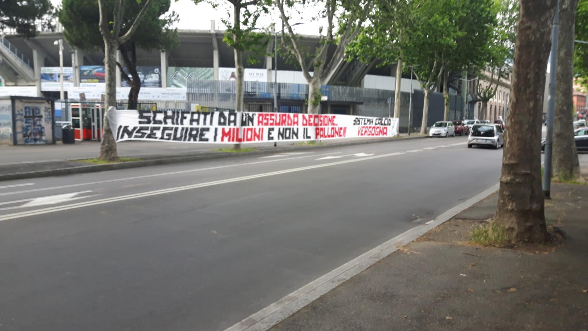 I sostenitori nerazzurri non sono nuovi a simili iniziative: già il 12 maggio scorso, nello stesso punto, lo striscione “Il nostro dolore volete dimenticare… ma senza la sua gente non ha senso tornare a giocare”, in riferimento al dramma vissuto dalla Bergamasca per la pandemia di Coronavirus. Il 13 dello stesso mese, sulla pagina Facebook ‘Sostieni la Curva’, era apparso un documento “condiviso da più di 180 tra Curve e Gruppi italiani, dalla Serie A arrivando alle categorie regionali” e “sottoscritto da più di 90 Curve e Gruppi tra Spagna, Germania, Francia, Austria, Portogallo, Belgio, Bulgaria, Romania e Bosnia Erzegovina” sotto il nome collettivo Stop Football – No football without fans.