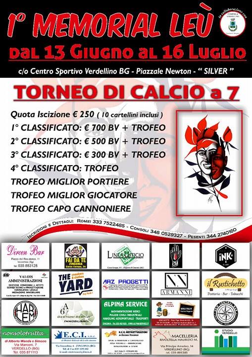 Appuntamento da non perdere a Verdellino dal 13 giugno al 16 luglio, quando andrà in scena il 1° Memorial Leù, istituito per ricordare Leonardo Scarpellini, morto sul lavoro a gennaio. Tra gli organizzatori figurano i suoi amici più cari. Qui sotto la locandina con tutte le informazioni.