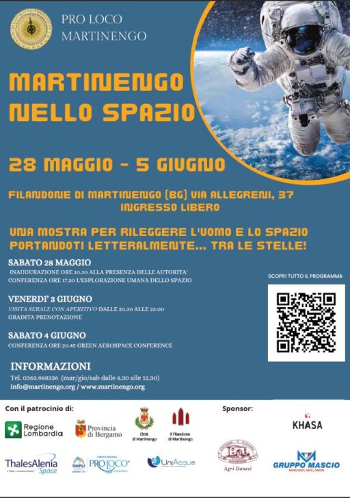 Martinengo – La locale Pro Loco ha ideato e messo in campo tutte le energie per rendere possibile un evento di portata…. spaziale! Infatti, a partire da sabato 28 maggio avrà inizio una mostra dedicata all’esplorazione dello spazio, ripercorrendo l’incredibile storia del volo umano, con eventi, conferenze a tema e visite guidate alla mostra e al borgo medioevale.