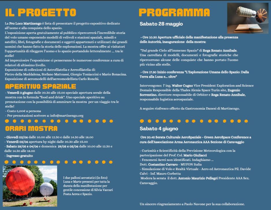 Concludendo non possiamo che augurare grande successo, in attesa del “decollo” della navicella che sulla propria fiancata ha stampato a caratteri d’oro “Martinengo nello Spazio”.