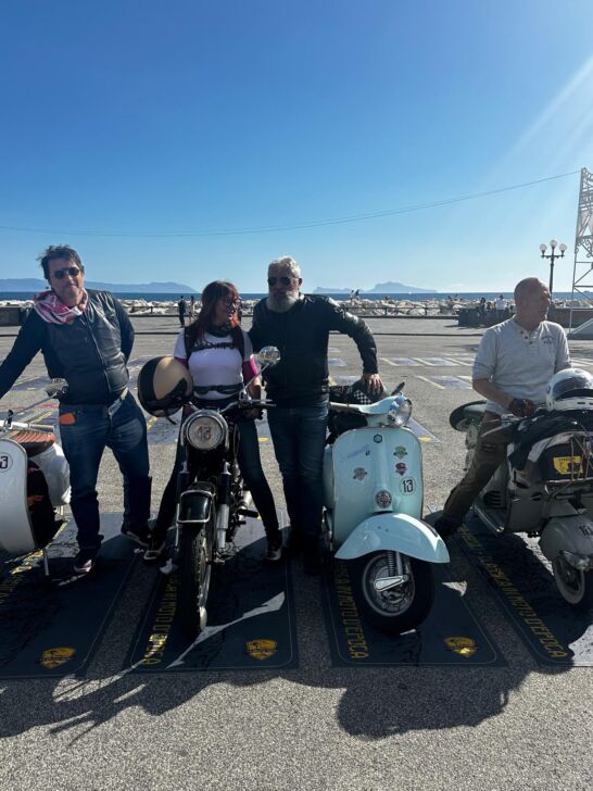 Menù ricchissimo, La Brescia-Napoli classica per moto d’epoca, tra i traguardi intermedi di Ravenna, Orvieto e Ariccia. Nel team del nostro, innanzitutto, tra un classicissimo su due ruote e l’altro, “e chi se ne frega della classifica, gravitiamo tra il quinto e il settimo, non ha importanza”: Denise Massenti, su Bmw R26, la Vespa 50 VSA 1T di Vaner Vendramini, che Ottone, referente della squadra Paul Picot, ha sellato sulle erte appenniniche al secondo giorno di gara nonostante le fatiche d’Ercole del cinquantino sulle pendenze più ripide, la sua Vespa 125 GT personale del ’69 e la Lambretta LD di Paolo Pezzotti.