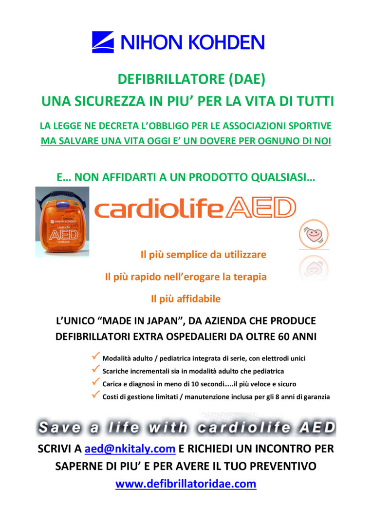 MADE IN JAPAN Defibrillatore cardiaco d’eccellenza sviluppato da NIHON KHODEN azienda leader al mondo nella produzione di defibrillatori ospedalieri bifasici, manuali e semiautomatici (DAE).