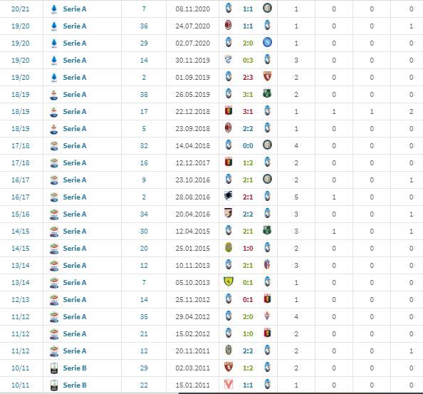 Bilancio favorevole a entrambe le contendenti con il capitolino. La Juve, che comunque ci ha perso l’ultimo match, la finale di Coppa Italia col Napoli (ko per 4-2 ai rigori) il 17 giugno scorso, ha vinto 11 volte su 15 perdendone e pareggiandone 2, prevalendo in tre occasioni nel derby della Mole, l’ultimo del 2019 e i precedenti negli ottavi (2015-2016) e nei quarti (2018) del trofeo della coccarda. Doveri, 11 vinte, 7 pareggi e 5 sconfitte (vedi sotto lo screenshot da Transfermarkt) per la Dea, non è mai stato però il giudice terzo dello scontro diretto tra le due squadre. Gli assistenti sono Mariano Preti di Mantova e Stefano Liberti di Pisa, al Var Massimiliano Irrati di Pistoia e Daniele Bindoni di Venezia.