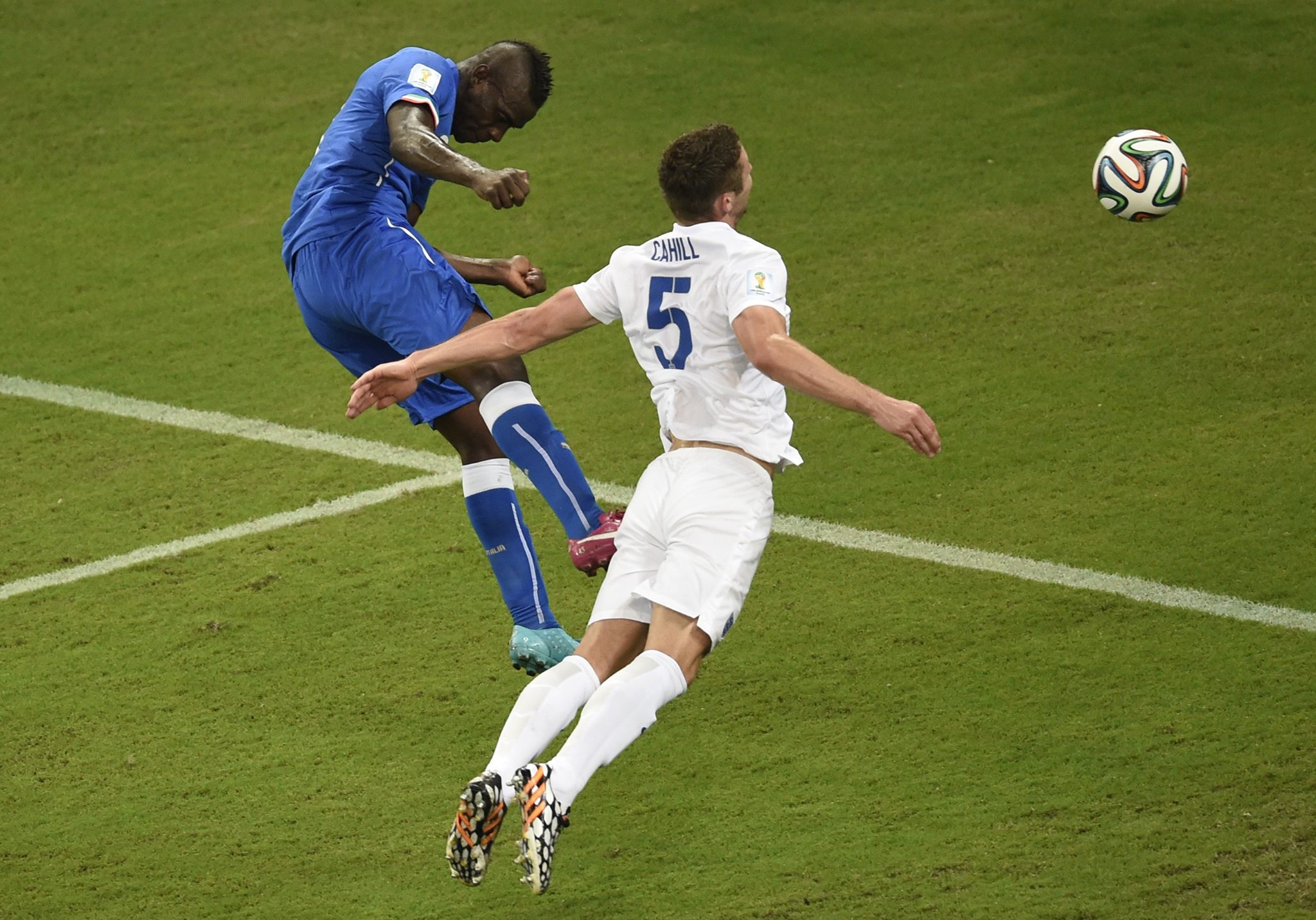 Manaus – Buona la prima: l’Italia batte l’Inghilterra confermandosi bestia nera dei “Three Lions” e issandosi in testa alla classifica del girone in compagnia della Costa Rica. In un contesto equilibrato, e condizionato dall’afa amazonica, la spunta la nazionale di Cesare Prandelli, che pesca a inizio-ripresa il jolly grazie a “Super-Mario” Balotelli. Soffrono in avvio gli azzurri. Illusione del gol al 3’ quando Sterling avanza palla al piede calciando un tiro-bomba che si spegne sull’esterno della rete. Subito dopo è Henderson a provare di esterno destro, chiamando Sirigu a un intervento in tuffo tutt’altro che semplice. All’11’ Paletta sbaglia in appoggio: palla a Welbeck che dal limite non inquadra la porta. Il primo squillo italiano arriva al 18’, ma il tentativo di Candreva è neutralizzato da Hart. Ancora un brivido intorno alla mezzora, quando Welbeck salta netto Paletta e mette in mezzo, ma è decisiva la chiusura in scivolata di Barzagli che salva in angolo. Il finale di tempo vede l’Italia più intraprendente. Al 32’ sponda di Darmian per Balotelli che dal cuore dell’area stecca la conclusione agevolando la chiusura degli inglesi. Sono le avvisaglie del gol che arriva al 35’. Su schema d’angolo, Pirlo fa il velo innescando Marchisio: controllo da manuale e destro sibillino che indovina l’angolo più lontano. La gioia dura troppo poco. Passano soltanto due minuti e Sterling, il migliore tra gli inglesi, libera sulla sinistra Rooney, che scende in fascia e pesca Sturridge, implacabile con un destro di controbalzo che non dà scampo a Sirigu. Extra-time al cardiopalma, ma la palla non ne vuole sapere di entrare. Pirlo serve in profondità Balotelli, che manda a vuoto Hart prima di provare il pallonetto a porta sguarnita: ci pensa Jagielka a salvare capre e cavoli con un intervento di testa sulla linea. Sul corner successivo, Candreva riceve defilato, evita l’avversario e calcia sul primo palo trovando l’opposizione del montante. A inizio-ripresa l’Italia torna in vantaggio. Dopo un tentativo di Welbeck neutralizzato da Sirigu, al 5’ Candreva pennella dalla destra: palla sul secondo palo dove Balotelli stacca di testa e batte Hart. Poi tanta Inghilterra, ma con risultati decisamente scarsi. Rooney ci prova in un paio di occasioni, ma senza inquadrare la porta. Poi è il neoentrato Barkley a partire in contropiede, e cercar gloria con un destro sul secondo palo, ma Sirigu è attento e respinge in tuffo. Al 31’ punizione morbida di Baines, ma Sirigu non fa rimpiangere l’infortunato Buffon e sfoggia un altro intervento salva-risultato. La girandola di cambi ride agli azzurri, apparsi decisamente più tonici nonostante l’accentuata stanchezza. In pieno recupero Pirlo calcia la famigerata “maledetta”: Hart fuori causa ma la traversa dice di no. Poco male, al triplice fischio l’Italia festeggia i primi tre punti di una cavalcata che, dopo tanti dubbi e incognite, volge al sereno. Nik