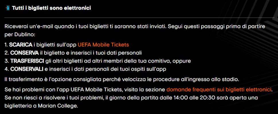 Il Meeting Point è aperto solo ai possessori di biglietto! Tieni a portata di mano il tuo biglietto elettronico sull’app UEFA Mobile Tickets.