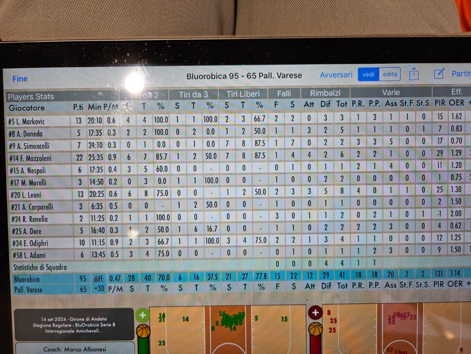 C’è una categoria di differenza, ma tant’è. Trentello di margine, alla fine, per la Bluorobica Bergamo (B Interregionale), ovvero i soliti Under 19 più due veterani, sempre un ottimo scrimmage è, contro l’Academy Varese di serie C. Protagonista, a Martinengo, l’ala Federico Mazzoleni, 22 punti e 6 rimbalzi, mentre sotto le plance Lorenzo Leoni s’è fatto valere giungendo a due carambole dalla doppia cifra. Assistman principe, invece, Alex Simoncelli, capitano nonché uno dei due senior insieme al pivottone Ljubo Markovic, con 6.