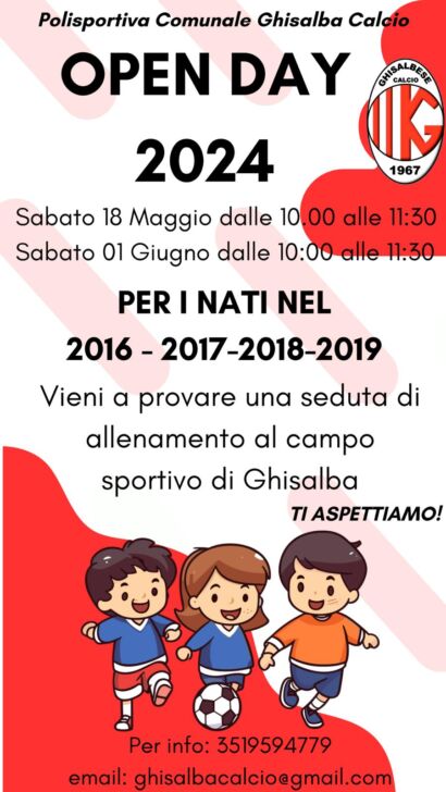 Ghisalba, ecco l’open day per le annate 2016-2017-2018-2019 16 Maggio, 2024 Di seguito la locandina con tutte le informazioni: