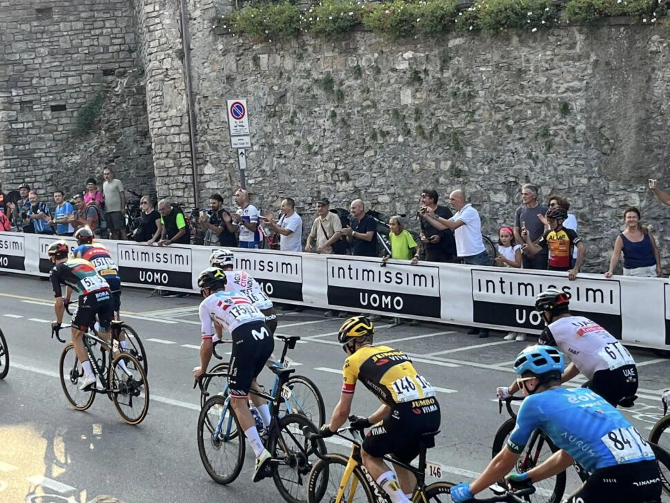 Spettacolo sulle strade del Giro di Lombardia vinto a mani basse da Tadej Pogacar, fenomenale campione sloveno. “Vederlo scattare a pochi metri di distanza da te è un’emozione unica, indescrivibile”. “Eh sì, ma ti ricordi quando aspettavamo le volate di Pozzato? Che tempi e che meraviglia quella Milano Sanremo del 2006”. La nostra giornata da sogno inizia qui. Perché sia da sogno lo capiremo solo alla fine. Siamo in Colle Aperto, la posizione più strategica. Il leader e favorito della Uae Emirates ci sfreccia davanti, è solo, gara praticamente in cassaforte. Gli inseguitori sono spacciati. Scendiamo allora subito in città bassa, che magari riusciamo anche a vederci la premiazione. Un replay dell’arrivo dai nostri smartphone, Pogacar è troppo veloce, non l’avremmo raggiunto nemmeno in taxi. Dominante. A braccia alzate sul traguardo di Porta Nuova. Il Lombardia è uno spettacolo vero, con i più grandi ciclisti al mondo a contendersi la vittoria nella magica cornice di Bergamo Alta. Moltissimi tifosi, principalmente bergamaschi ed italiani, ma anche tantissimi stranieri, assiepati ai bordi delle Mura e su alcuni dei punti di osservazione più belli come le Piscine del Seminarino o anche la mitica ‘montagnetta’ in cima a Porta Garibaldi. Un quadro meraviglioso, un tifo puro e unico, passione e amore per uno sport mitico che a Bergamo è sempre di casa. La premiazione ci è sfuggita, come Pogacar del resto. Nemmeno il nostro passo olimpionico sotto un sole estivo ha fatto il miracolo. La Rai ha già spento le telecamere. Le transenne sono già caricate sui mezzi per la prossima gara. Un pizzico di amarezza prende il sopravvento. Ci immettiamo nella via con i pullman delle squadre. Magari lo vediamo lì, per una foto da lontano o per un selfie rubato che varrebbe la gloria eterna. Niente, si fa attendere troppo e le ore passano in fretta. “Dai che magari adesso torniamo verso casa e incontriamo Pozzato”. Per chi non l’avesse ancora capito, era il nostro idolo sulle due ruote da ragazzini. Possibilità di riuscita: una su un milione. In lontananza un capello biondo che ci ricorda vagamente lui, ma ci sembra tutto surreale. Ci avviciniamo, sempre di più. Ha gli occhiali da sole scuri. Eppure è identico. Siamo ad un metro ed ecco la domanda del secolo: “Scusi, lei è Filippo Pozzato vero?”. “Sì, certo”. I sogni si avverano, adesso ne abbiamo le prove. “Possiamo scattare un selfie insieme?” “Certo, ci mancherebbe”. Ci abbraccia e la foto è fatta. Gli diamo del tu. Lui del 1981, noi del 1982, l’anno dell’Italia Campione del Mondo quindi nati sotto il segno di Pablito. La nostra giornata è nella storia. Tutto vero. Abbiamo stretto la mano al nostro idolo e siamo felici come bambini. Pogacar ci scuserà. Noi l’abbiamo fatto con lui per non averci aspettato all’arrivo. Evviva il Lombardia, evviva Bergamo, evviva il ciclismo, evviva Pippo Pozzato!