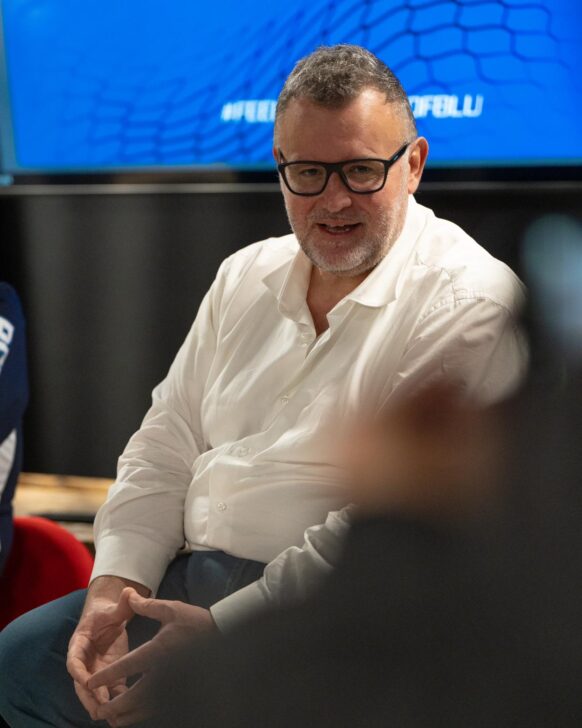 L’occasione da Pernice Comunicazione, che è anche sponsor della Blu Basket Bergamo, è propizia anche per la presentazione di Gabriele Casalvieri, già direttore generale prima del cambio della guardia che ha visto uscire anche Fabrizio Frates e da oggi ufficialmente nelle vesti di suo erede nella carica di direttore sportivo. “Col presidente è stata una chiamata fulminea ma accettata con grande entusiasmo. Ci siamo incrociati nei miei nove anni mantovani, eravamo stati vicini in passato senza che poi se ne fosse fatto nulla. Il progetto è allo stesso tempo entusiasmante ma complicato, però come ho dimostrato a Mantova a me piace radicarmi in un posto e in un progetto. La forza trainante sono le energie anche economiche che il presidente Mascio, uno che trasmette il suo carisma e la sua voglia di fare, spende per far abbracciare la città e la squadra. Questo cambiamento mi consente finalmente di lavorare con Ramagli, che volevo portare già a Mantova quando era sempre molto richiesto. L’obiettivo a medio termine è portare la gente e l’entusiasmo al palazzetto: va ricercato un confronto continuo con la piazza attraverso uno staff apposito che possa lavorare in questo senso”.