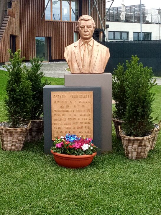 Zingonia – L’uomo lassù, il 30 settembre, avrebbe compiuto 72 anni da un giorno. Corsi e ricorsi del destino: “Che Cesare sia un esempio di perseveranza e di rinascita: lui, appena presa la presidenza, retrocesse in serie C. I risultati che ottenne poi li conosciamo tutti”. Umberto Bortolotti ha ricordato così la figura del fratello Cesare, tragicamente scomparso nel decennale dall’elezione al vertice, in una piovosa e dannatissima serata, il 7 giugno del ’90. L’Atalanta di coppe di Emiliano Mondonico era una realtà, come lo è stata fino a quest’anno quella del ciclo magico di Gian Piero Gasperini, presente con dirigenti, tifosi ed ex calciatori (Pizzaballa, Gentile, Rossi, Foscarini, Magrin, Filisetti, Adelio Moro, Bonacina, Nicolini, Contratto e Paleni tra gli altri) alla scopertura del busto bronzeo restaurato e riposizionato dell’imprenditore illuminato e predecessore immediato dell’Antonio Percassi atto I: “Una riallocazione ideale, davanti all’Accademia Favini destinata alla crescita del settore giovanile e inaugurata tre anni fa, per una persona e una famiglia fantastica. Non posso dimenticare di aver esordito diciassettenne (il 21 febbraio ’71, a Bergamo contro il Bari, NdR) col papà Achille presidente. La filosofia societaria non è mai cambiata: coltiviamo i nostri prodotti, buon ultimo Scalvini, proponendo un calcio interessante e pronto sempre a nuove sfide”.