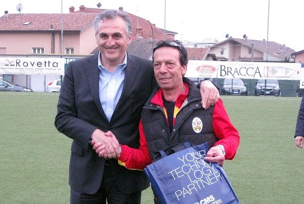 Grave lutto in casa Villa d’Almè Valle Brembana. Giovanni Tagliaferri, 56 anni, allenatore degli Esordienti 2005, non ce l’ha fatta: colpito da una lunga malattia che non gli ha lasciato scampo, è morto martedì nella sua casa di Ubiale di Clanezzo. Originario di Schilpario, con un trascorso da maestro di sci, era sposato e padre di un figlio di 16 anni che veste la maglia degli Allievi regionali del Villa. Conosciuto e stimato nell’ambiente sportivo per il suo impegno e la sua serietà, lascia un vuoto nella società brembana con la quale collaborava proficuamente da anni. A dimostrare l’affetto dei suoi ragazzi e dell’intera realtà del Villa, il prossimo fine settimana calcistico, tutti i giocatori della compagine giallorossa scenderanno in campo con il lutto al braccio. I funerali di Tagliaferri (nella foto sotto col presidente Castelli) si terranno giovedì alle 14.30 nella parrocchiale di Verdellino, paese di origine del mister.