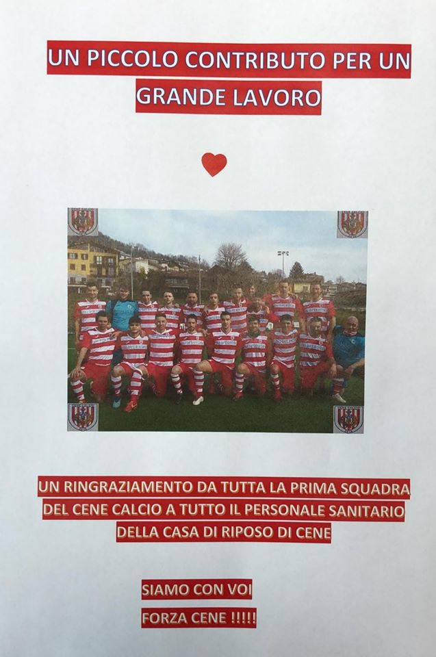 “Gesti che fanno la differenza… l’amministrazione comunale ringrazia di cuore il Cene Calcio per la generosa donazione con la quale sono state acquistate un numero considerevole di mascherine FFP2. Questo prezioso materiale servirà ai dipendenti della RSA di Cene schierati in prima linea nella difficile lotta al contenimento del Coronavirus”.