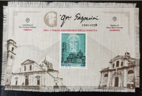 Ringraziato Spampatti torniamo a descrivere il momento marcofilo approfondendo il tema del “carto-lino”. Si tratta di una cartolina interamente ed unicamente in lino pregiato, tessuto nel 2021 dalla Torri Lana 1885 di Gandino, nell’ambito del progetto “Lino Val Gandino”. Il tessuto è stato realizzato su un antico telaio con la lavorazione delle fibre ottenute da un campo coltivato appunto a lino in paese e lavorate presso il Linificio Canapificio Nazionale di Villa d’Almè. Nel progetto è stata compresa anche la realizzazione di copie della Sindone in scala 1:1 in collaborazione con il Centro Internazionale di Studi sulla Sindone di Torino. La stampa del carto-lino è stata poi affidata alla Elfi Reggiani di Grassobbio, con l’utilizzo della procedura “a pigmento” già utilizzata per realizzare le copie della Sindone.
