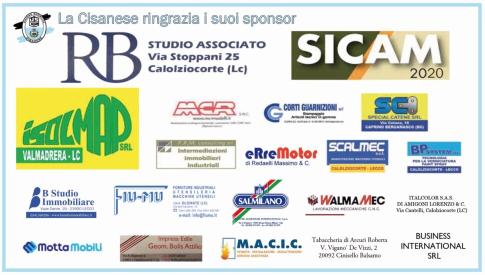 La Cisanese guarda al futuro e si prepara per settembre quando, covid permettendo, ci si auspica che il mondo del calcio dilettantistico possa ripartire in sicurezza. Annata particolare per il club del presidente Regazzoni (nella foto insieme al dg Forliano), che proprio quest’anno festeggia il centenario della propria fondazione: “In queste settimane – si legge nel comunicato del club – la nostra società si è privata di diversi giocatori della propria rosa prima squadra 2020/2021, a seguito delle richieste ricevute da società di serie D e di Eccellenza che hanno aderito alla ripartenza del campionato: ovvero Matteo Capelli al Lemine Almenno, Mattia Noris e Marco Bortoli al Mapello, Matteo Mangili e Nicolas Parravicini allo Scanzorosciate, mentre Guido Landi è in procinto di essere trasferito all’Ac Leon.