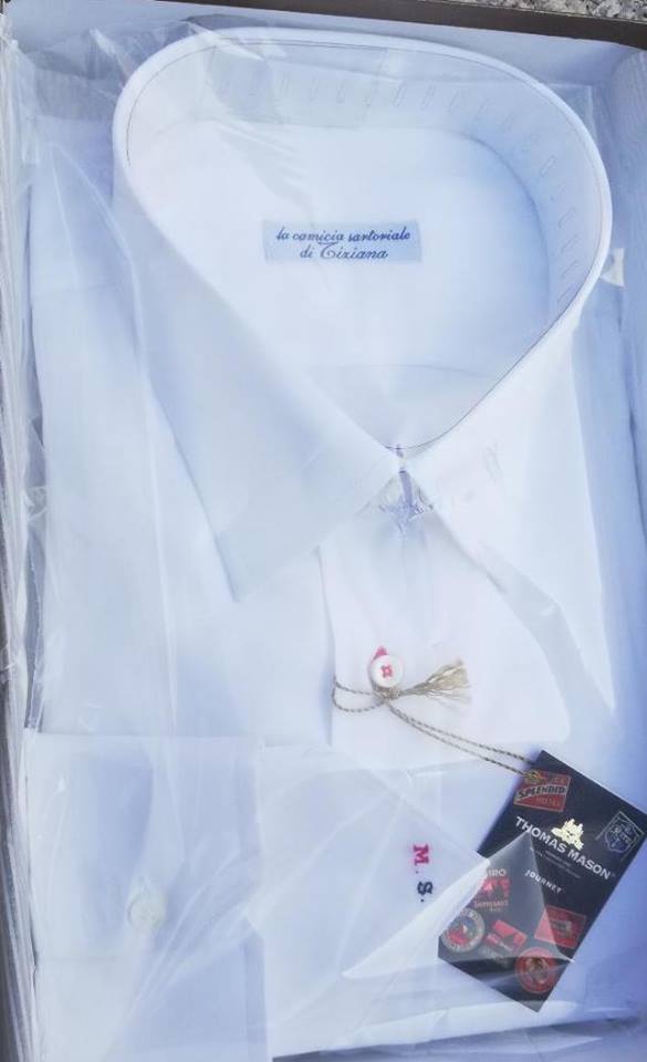 La camicia è bellissima, di cotone bianco, l’etichetta recita “La camicia sartoriale di Tiziana”, mentre il brand del tessuto è altisonante, “British”, dal tocco raffinato: un esempio unico di qualità, stile ed eleganza. Rimanendo in tema, è giusto far sapere che i più importanti stilisti, statisti, politici, attori, cantanti, imprenditori e perché no le Case Reali di tutto il mondo, vestono cotone made i Bergamo.