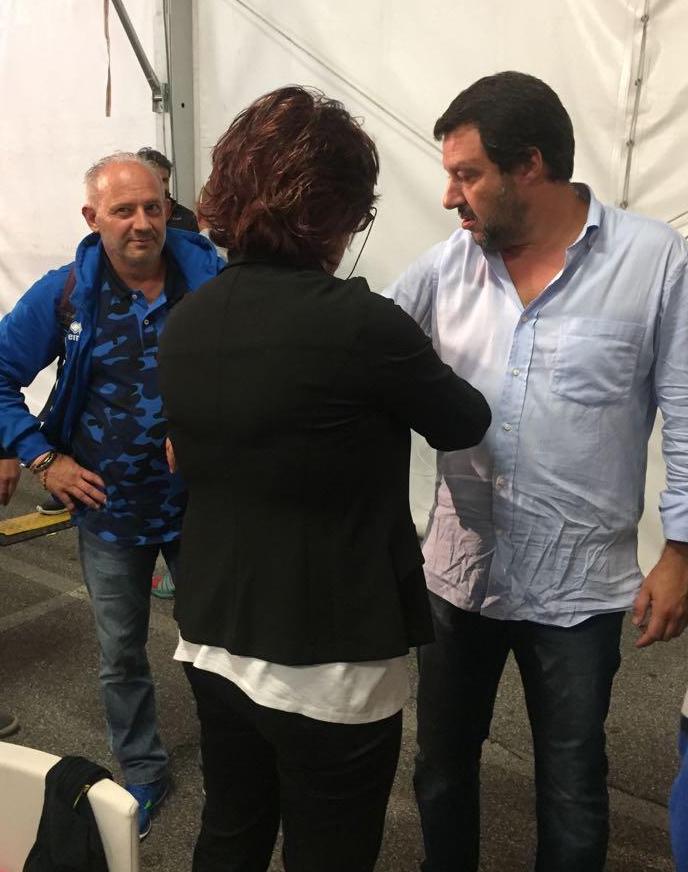 Il momento della consegna, del regalo, arriva a Paderno Dugnano, a tarda sera, quando Salvini è stanco morto dopo il summit di Vienna con gli altri ministri dell’Interno, e dopo un precedente incontro pubblico a Paullo.