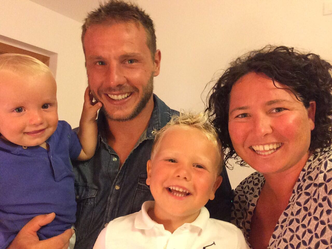 Nella foto Stefano Belussi con i figli Filippo e Giacomo e la moglie Alessia