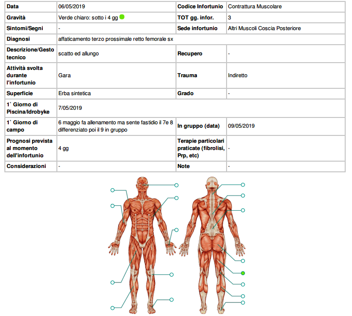 WeakRisk dopo avere eliminato Excel obsoleti, facilitato la raccolta dati dei carichi interni ed esterni levato manualità inutili a chi ha invece necessità di lavorare con lucidità, creato un apposito diario clinico e tanto altro, andrà oltre investendo risorse e nuove energie nell’affinare nei prossimi mesi l’area dedicata agli infortuni ed alla informativa legati a questi nonché alla loro prevenzione. Su questa area, già presente nel nostro software, verranno inserite modifiche ed implementazioni che sicuramente e piacevolmente sbalordiranno gli addetti ai lavori e le società che avranno finalmente informazioni mirate e certe.