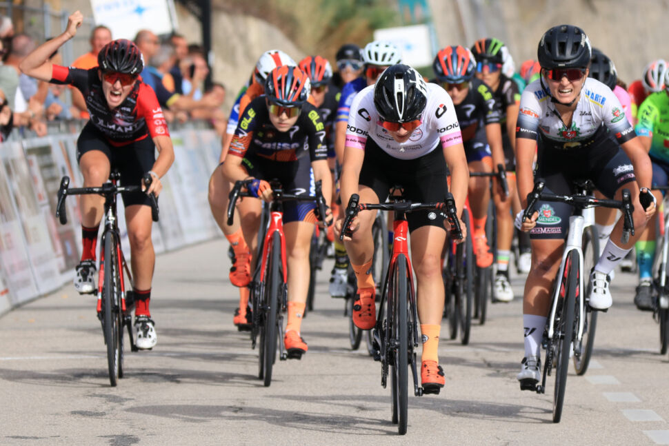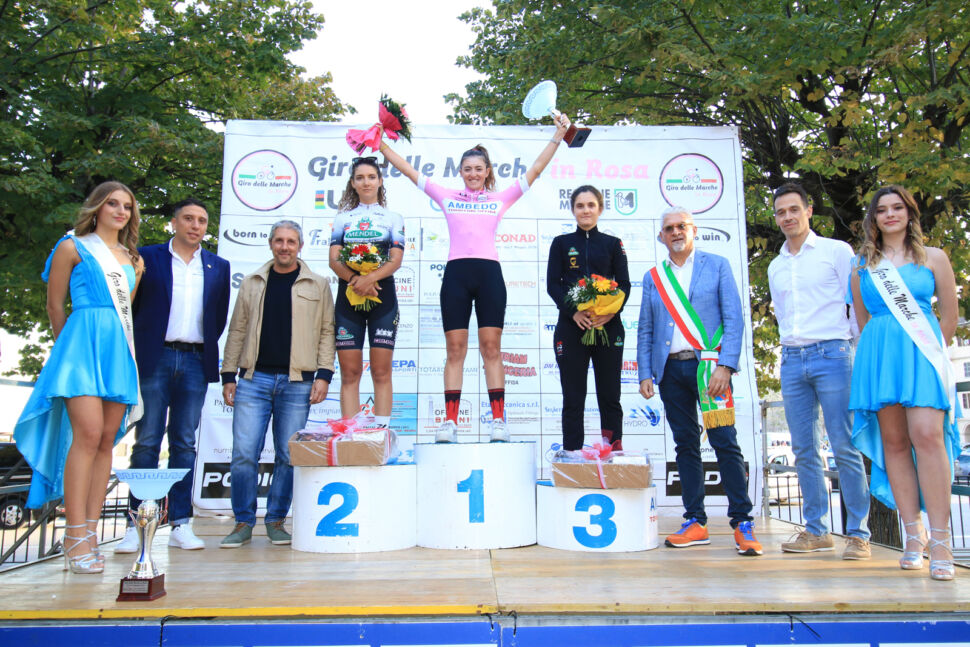 Proprio la decima piazza nella prova più impegnativa, corsa sulla distanza di 92,8 chilometri caratterizzati dalle sette scalate al ‘muro’ della celeberrima ‘citta del merletto’, ha permesso ad Asia Zontone di vestire la maglia rosa di leader assoluta della prestigiosa challenge marchigiana. La ventiduenne atleta di Buja (Udine), già vincitrice della frazione di Villa Musone nella stagione agonistica 2022, è stata ben supportata dalle compagne di squadra Sofia Arici, Sara Pepoli, Sonia Rossetti ed Emanuela Zanetti, che è anche salita sul secondo gradino del podio nella graduatoria finale dei traguardi volanti.
