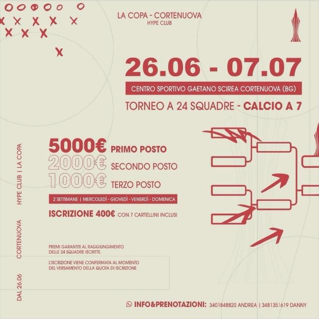 Nel frattempo si terrà il torneo a 24 squadre calcio a 7 al centro sportivo Gaetano Scirea a Cortenuova.