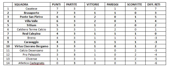 Nel fine settimana si è giocata la terza giornata del campionato Juniores Nazionale che ha portato risultati inaspettati e ricchi di sorprese. A festeggiare è il Ponte San Pietro di mister Ottolenghi, che prosegue la striscia di vittorie e conferma una fantastica differenza reti superando per 4-1 la Pro Palazzolo. Decisive le reti di Ferrari, Kante e la doppietta del solito Gritti, capolista in solitaria nella classifica marcatori. Anche la Virtus Ciserano di mister Togni vola: un bel 5-1 spazza l’Atletico Castegnato e agguanta i primi punti di questa stagione. Nel derby bergamasco il Brusaporto batte e sorpassa il Villa Valle. I ragazzi di Longaretti espugnano per 2-1 il fortino della squadra guidata da Mangone e volano in testa alla classifica, a parimerito della Casatese, con sette punti e senza subire sconfitte. Reti immacolate tra Tritium e Caldiero Terme, con un pareggio che fa stazionare entrambe le squadre a metà classifica e a cinque punti. La Real Calepina cade per 2-1 in casa contro il Breno, la rete di Zanotti illude e arriva il primo ko per la compagine di Bordogna. Sconfitta difficile da digerire per il Caravaggio, i biancorossi di Regantini vengono spazzati per 5-1 in casa della capolista Casatese in una gara a senso unico.
